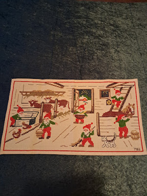 Endel av min barndom ska presenteras. Till allmän beskådan för alla som firar jul hos mej. Minnen, minnen ,minnen.... de flesta broderade av min mamma. Nån broderad av mej. Jag har flera i gömman som ännu inte är färdigställda. Så mycket nostalgi. Minns så väl när det skulle pyntas till jul när jag var liten. Bonaderna var en viktig del och ett viktigt minne för mej. Det här kan jag återskapa.